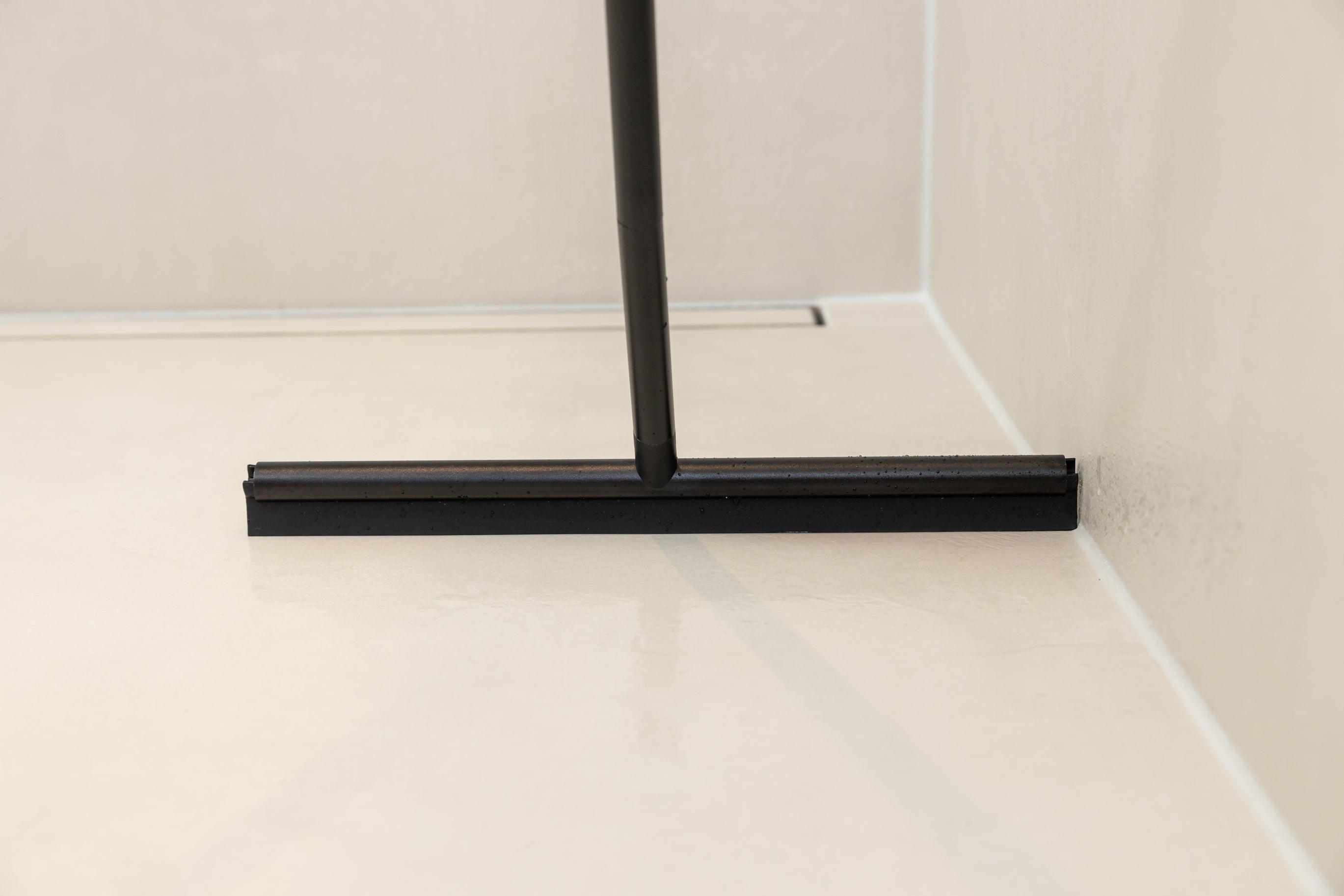 En essuyant l'eau des carreaux et des vitres immédiatement après la douche avec une raclette, vous empêchez les gouttelettes d'eau de sécher et de laisser du calcaire. Un essuyage régulier signifie moins de nettoyage !