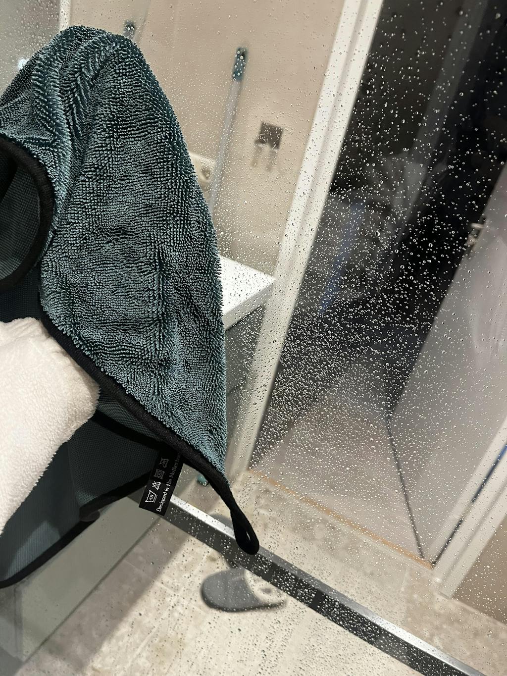 Wij adviseren om eerst de meest vocht gevoelige plekken (zoals de glazen deur en spiegels) droog te maken en vervolgens de douchewanden.