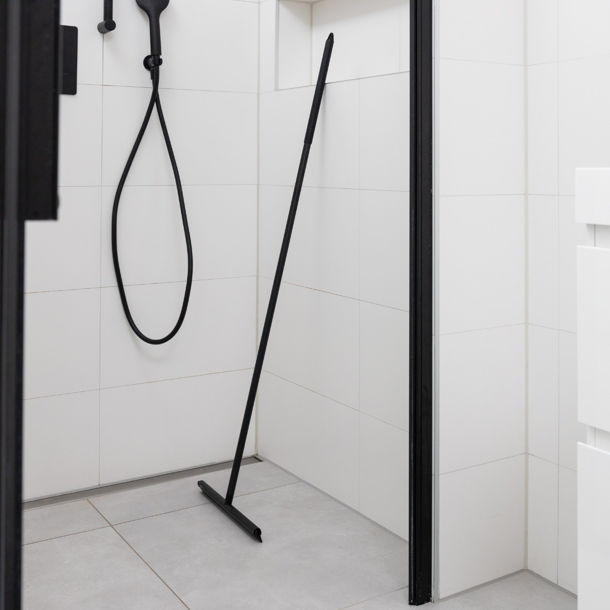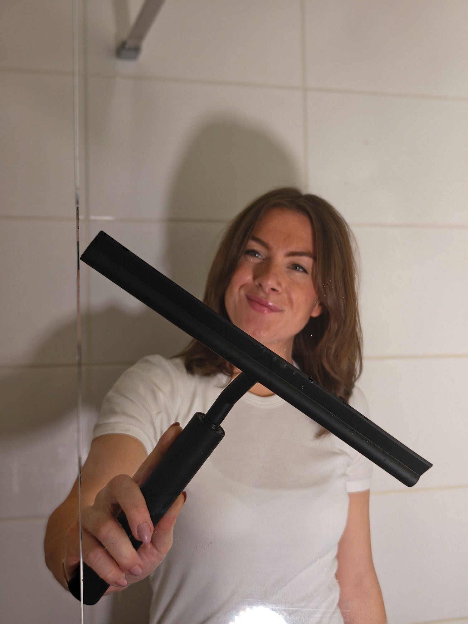 Door na het douchen direct het water van tegels en glas weg te trekken met een douchewisser, voorkom je dat waterdruppels opdrogen en kalk achterlaten. Regelmatig wissen = minder poetsen!
