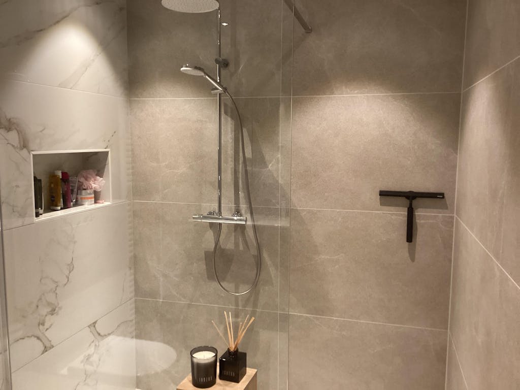 Door na het douchen direct het water van tegels en glas weg te trekken met een douchewisser, voorkom je dat waterdruppels opdrogen en kalk achterlaten. Regelmatig wissen = minder poetsen!